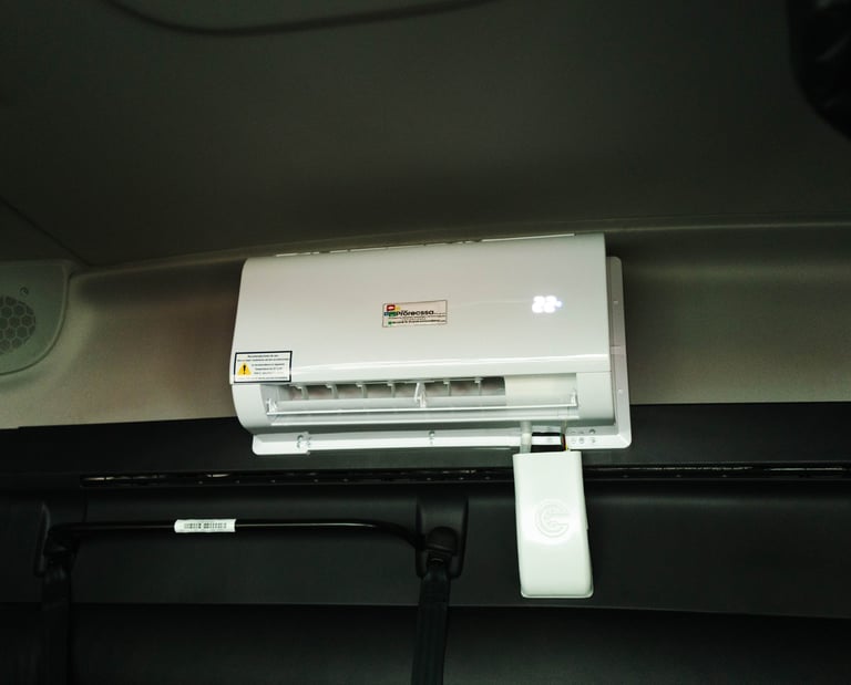 Sistema compacto instalado en el techo, diseñado para enfriar la cabina incluso en los climas más extremos.