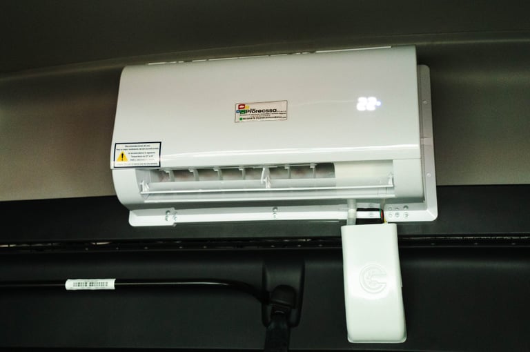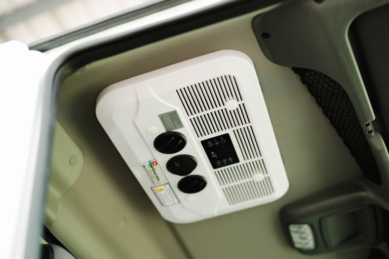 Sistema compacto instalado en el techo, diseñado para enfriar la cabina incluso en los climas más extremos.
